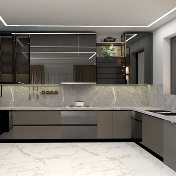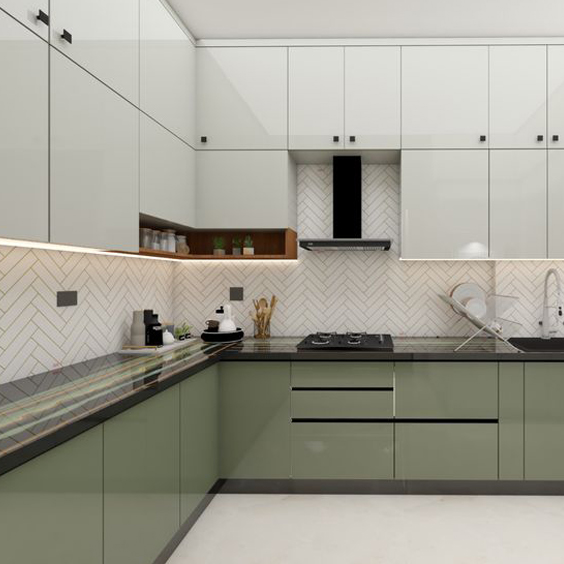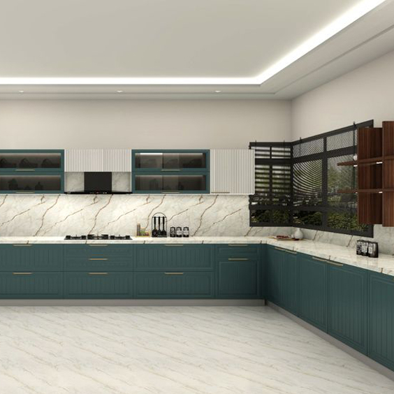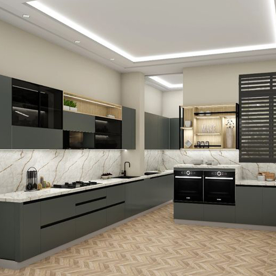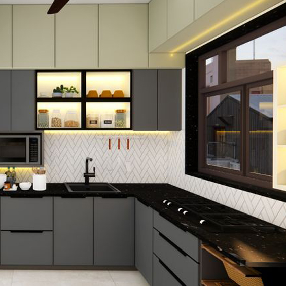 High-quality wood finishes and smart storage solutions, the Mettawood L-Shaped Kitchen blends