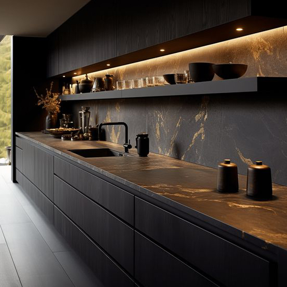 single-wall layout. Ideal for smaller spaces, this kitchen maximizes every inch with a sleek and